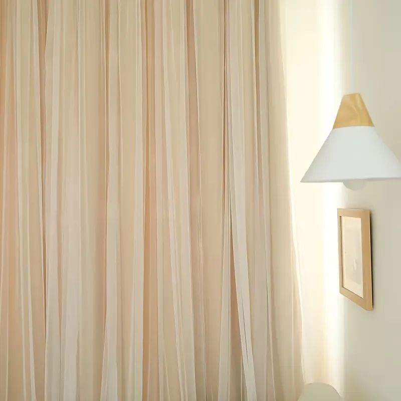 Dual Layer Beige Blackout Curtains designed with sheer and thermal layers for enhanced light blocking and insulation. Made from 100% polyester with grommet top for easy hanging, these modern drapes suit bedrooms, living rooms, and kids rooms all year round.