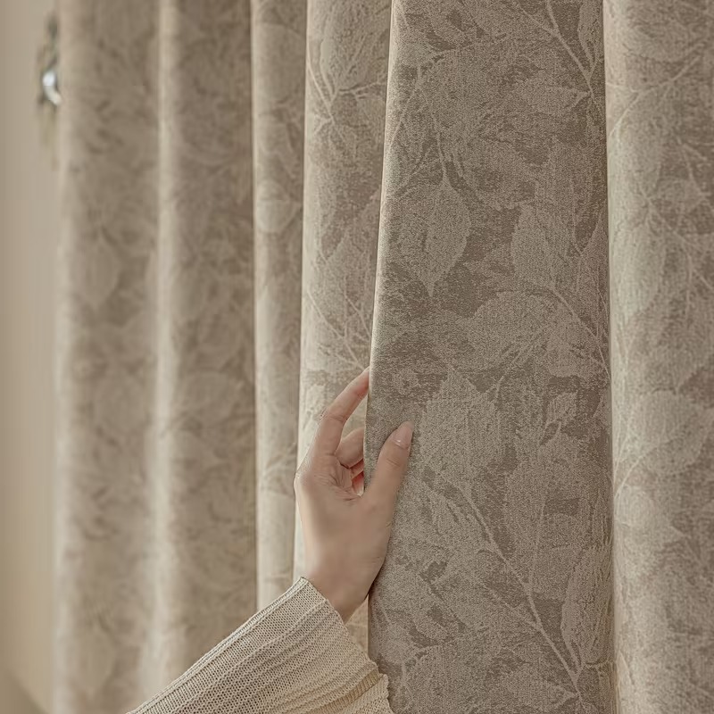 Vintage Jacquard Leaf Blackout Curtains crafted from heavy chenille polyester fabric for superior light blocking, privacy, and thermal insulation. Designed for living rooms and bedrooms, these woven drapes feature versatile hanging options and elegant leaf patterns for classic interior styling.